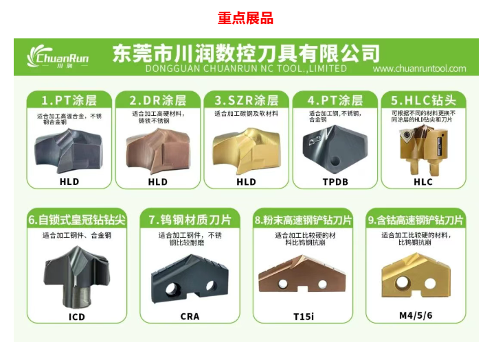 东莞市川润数控刀具有限公司,是一家以提供钻头、刀片、刀柄等工业钻头与数控刀具一体化服务为主的多元化公司。工厂成立10多年来,我们用心钻研刀具配件的研发设计与改进,品牌被客户认同,并且与多家知名品牌厂家合作 。